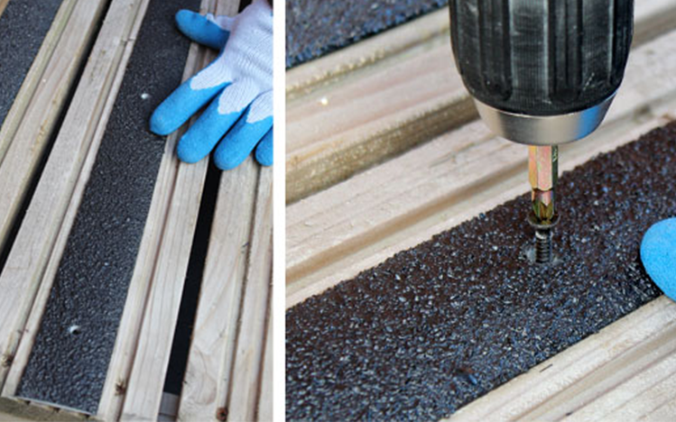 Anti-slip tape is easy to install, is quick, and it’s cheap as well. In fact, it’s one of the fastest and easiest solutions. Just like any other type of tape, anti-slip tape comes in a roll. You’ll just pull off the amount you need and stick it onto the deck. It’s dead-simple.