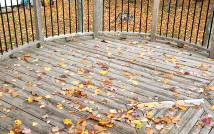 As mentioned, when the leaves and debris pile up, it holds moisture to the deck, which creates a breeding ground for the mould that can make your deck so slick. One of the easiest ways to prevent this is to regularly sweep all of the leaves and debris and remove them from your deck.