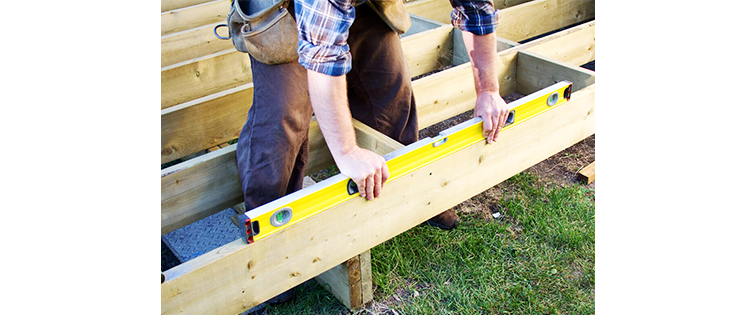 If this wasn’t already done during the construction of your outer frame, beams should be fixed onto every post along the longest length of the deck. A pair of beams should be bolted or screwed to either side of the posts for maximum deck strength. Beams should be spaced at maximum centres of 1.5m.