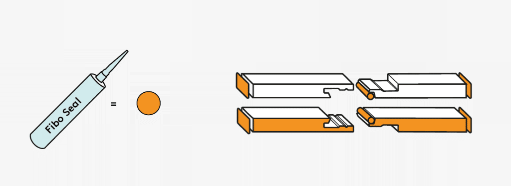 Click-lock, cut surfaces and profiles must be cleaned before grouting with Fibo Seal. We recommend using Fibo Seal on all plate joints and corner profiles.