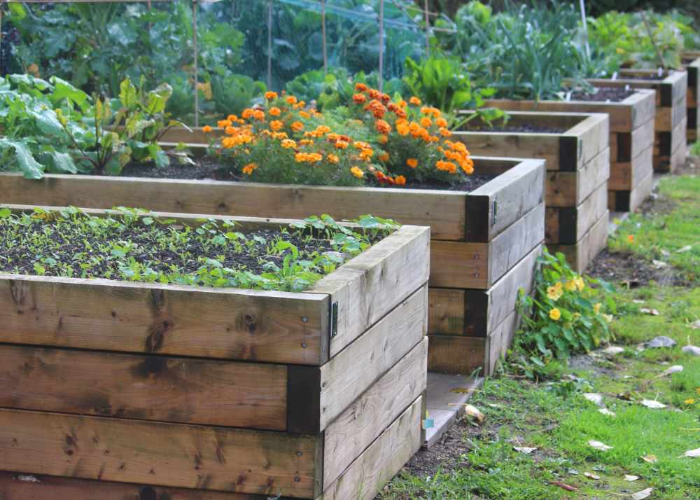 A single sleeper depth raised bed is suitable for flower, shallow rooted crops such as salad vegetables, whereas a double or triple layered bed allows room to grow root vegetables and larger shrubs.