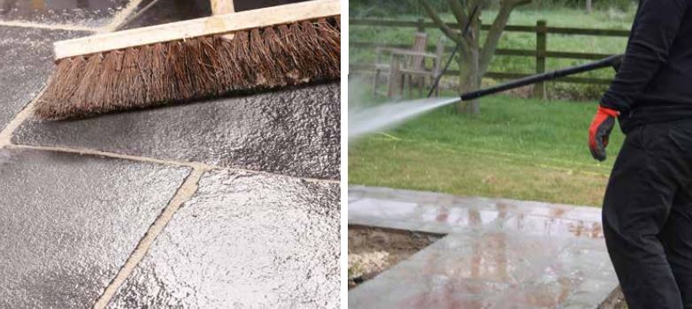 bristled brush when sweeping your paved area, as tougher wire brushes could scratch the stone.